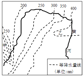 【小题2】甲处附近年等降水量线密集的原因是( )