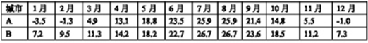 表A、B两城市多年月均温