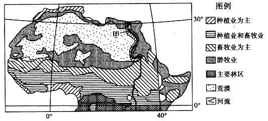 3、单选题 下图是世界某区域农业地带分布图。读图回答1~2题。