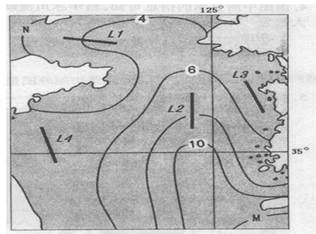 4、单选题 读某海域2月表层海水等温线图,完成9---11题。