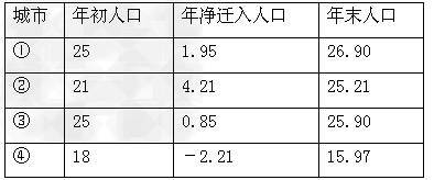 4、单选题 读某地区四城市2010年人口资料表,完成1~3题。