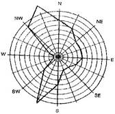 | 风向 | 南 | 西南偏南 | 西南 | 西南偏西 | 西 | 西北偏西 | 西北 | 西北偏北 |