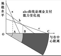 (2)图中表示商业支付地租能力的曲线是?。