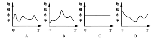 小题2:下列图中能够反映上图中沿“A→B”虚线地租水平变化特征的是