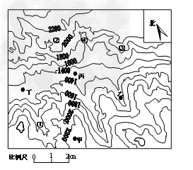 1.图中①、②、③、④位于谷地的有