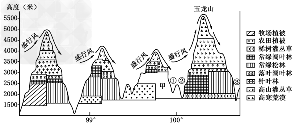 1.根据当地垂直植被带分布规律判断,甲处植被带应为