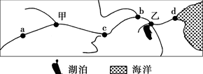 1、单选题 图中甲、乙是某河流上、中、下游的分界点,读图回答问题。