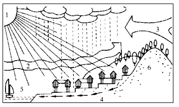 1.太阳 2.夏季风 3.冬季风 4.排水 5.河流 6.丘陵