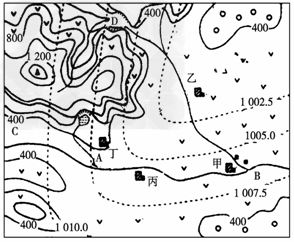 1、单选题 下图是我国某地区等高线及某时刻海平面等压线图。读图回答1—2题。