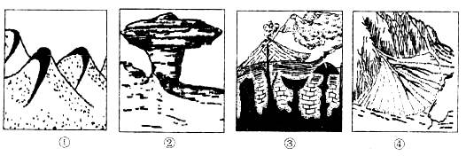 【小题1】①表示沙丘;②表示风蚀蘑菇;③火山喷发;④冲积扇。