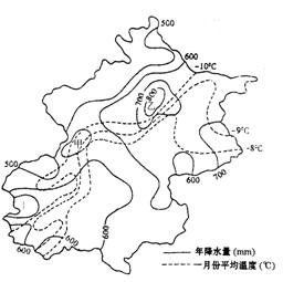 5、单选题 下面是我国东部某地区年降水量和一月份平均温度分布示意图,读图回答问题。