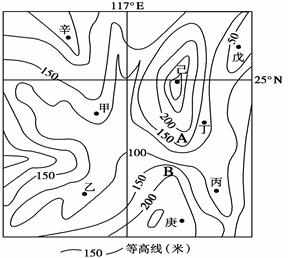 G.甲、乙、丙、丁海拔都在100米以上150米以下