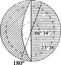 1、单选题 该图为以极点为中心的投影图,斜线部分表示黑夜,横线部分表示东半球,数字表示经纬度。据此回答问题。