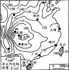 (2)兰州的纬度比广州高,但年太阳辐射总量比广州丰富的主要原因是__________________________。