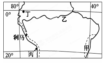 1.利马多大雾天气,主要原因是2.关于图中甲、乙两处气候的说法,正确的是3.丙地某年暴雨天气异常增多,与之相应可能出现的现象是4.乙地与丁地(丁地海拔约3500米)相比