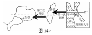 4、单选题 图14为某工业类型两次调整工业布局示意,读图回答小题。