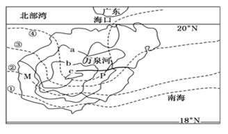 【小题1】海南岛越往中间海拔越高,故C等高线值最大。海南岛东侧为夏季风的迎风坡,降水多;西侧为背风坡,降水少,故M年太阳辐射比P地多,主要是因为M地晴朗天气多,故选C。