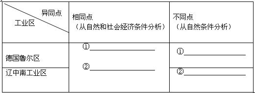 (1)根据所给材料,分析辽中南工业区和德国鲁尔区的发展传统工业条件的异同点,并填写下表。