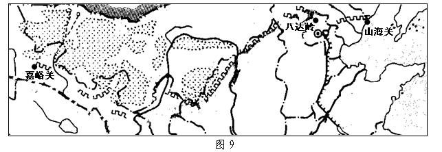 1、综合题 读图9“中国古长城分布示意图”,回答有关问题。(10分)?