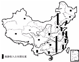 2、综合题 [旅游地理](10分)读“我国旅游收入比重图”,回答下列问题。