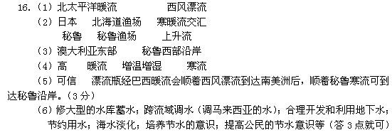 (6)位于赤道附近的新加坡属于热带雨林气候,全年高温多雨,但是该国淡水资源比较短缺,请为该国解决淡水资源提出解决的措施。(3分)