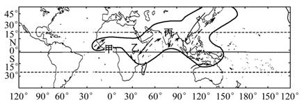 小题1:与图中甲处季风现象的形成密切相关的地理因素是(?)
