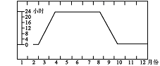 4、单选题 读某地的昼夜长短随月份变化示意图,回答题。