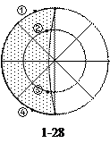 本题解析:图1-25为北极俯视图,自转角速度各地相等,①=②=③=④;线速度由赤道向两极递减,①=④>②=③。