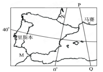 5、单选题 下图为世界局部地区示意图,图中PQ线为昏线,当PQ线与极圈相切时,一艘轮船从里斯本出发将一批货物运往马赛港。此时,里斯本与马赛相比(?)