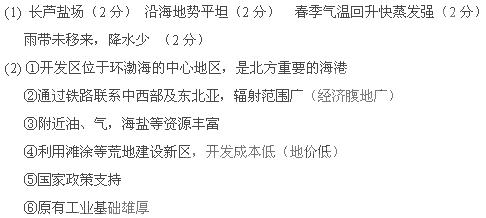 理角度,回答天津滨海新区开发的区位优势。(14分)