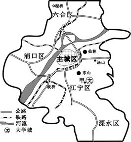 第(3)题,本题考查发展高新产业的有利条件。甲地目前成为南京重要的高新技术产业园,这里发展高新产业的有利条件有依托大学城,环境优美,政策支持等。