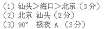 (1)该日,图2中三城市正午太阳高度由大到小排序是____>_____>_____。(3分)