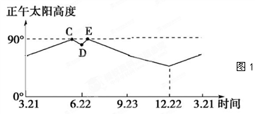 3、单选题 读图1某地正午太阳高度角年变化折线图,根据该地正午太阳高度变化的规律,判断该地可能位于: