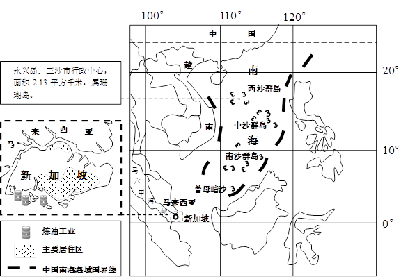 (1)2012年7月24日,海南省三沙市成立,下辖西沙、中沙和南沙群岛的岛礁及其海域。三沙市扼_________洋至_________洋的交通要道,战略地位重要。(4分)