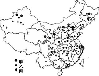 3、单选题 读图,中国纺织工业分布图,回答1~3题。