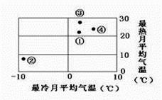 1、单选题 下图中的四地代表拉萨、昆明、重庆和贵阳,读图完成18~19题。