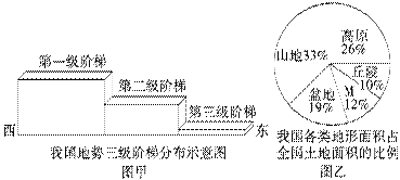 (1)由图甲可知,我国地势的总特征是?,呈阶梯状分布这种地势特征对我国河流流向的影响是?。