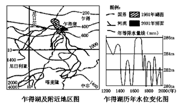 (1)乍得湖水系支流集中分布在湖泊的________,径流季节变化________是该水系突出的水文特征?请简要说明乍得湖历年水位变化的特点及原因?(4分)