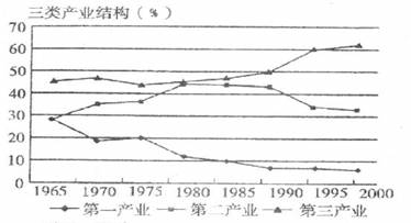 2、单选题 读我国某省三类产业结构变化情况图,完成下列各题。