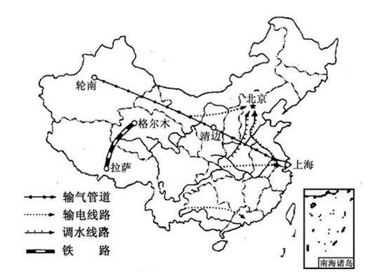 (1)填写四大工程名称:属于水资源跨流域调配的是??工程,属于能源调配的是??工程和??工程,属于交通设施建设的是??工程。