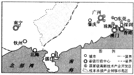 (1)概括国家级高新技术产业开发区的分布特点,说明其主要原因。(6分)广西桂东是我国国家级承接产业转移示范区之一。
