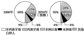 (1)根据材料1、2、3、4,简要概括美国人口特点。