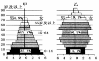 2、①②③④四个地区中,人口再生产与甲市处于同一类型的地区是