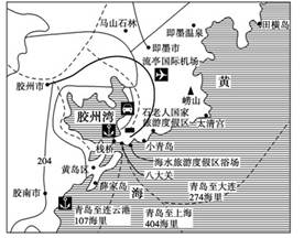 2、综合题 (12分)读“青岛市旅游图”,回答问题。