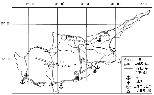 3、综合题 ? 位于亚热带季风区的某海岛是著名国际旅游目的地。岛上常住人口密集,大部分消费品需依靠岛外补给,国际交通依赖航空,游客多需提前预定行程。下图为该岛旅游景观分布示意图。读图回答问题。