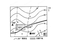 4、综合题 (10分)读等高线及城市区位图,回答下列问题。