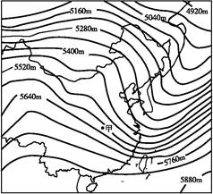 5、单选题 下图是某地区2011年1月8日某时500百帕等压面分布图,等压面上甲点的风向应是