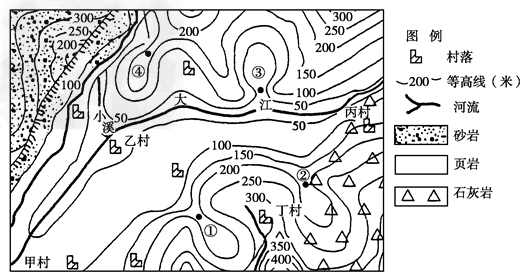 2、综合题 读“我国南方某地区的地质、地形示意图”,回答下列问题。