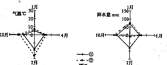 小题3:甲、为温带海洋性气候、乙丙为温带大陆性气候、丁地为地中海气候,从图中可以看出①为温带海洋性气候,②为地中海气候,D对。