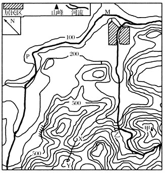 1、综合题 读“北半球某地等高线示意图”,回答下列问题。